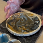 初めてのポーリングアートで「これで合ってる?」と不安になりながらも…絵具がカップから溢れ出てきたときには