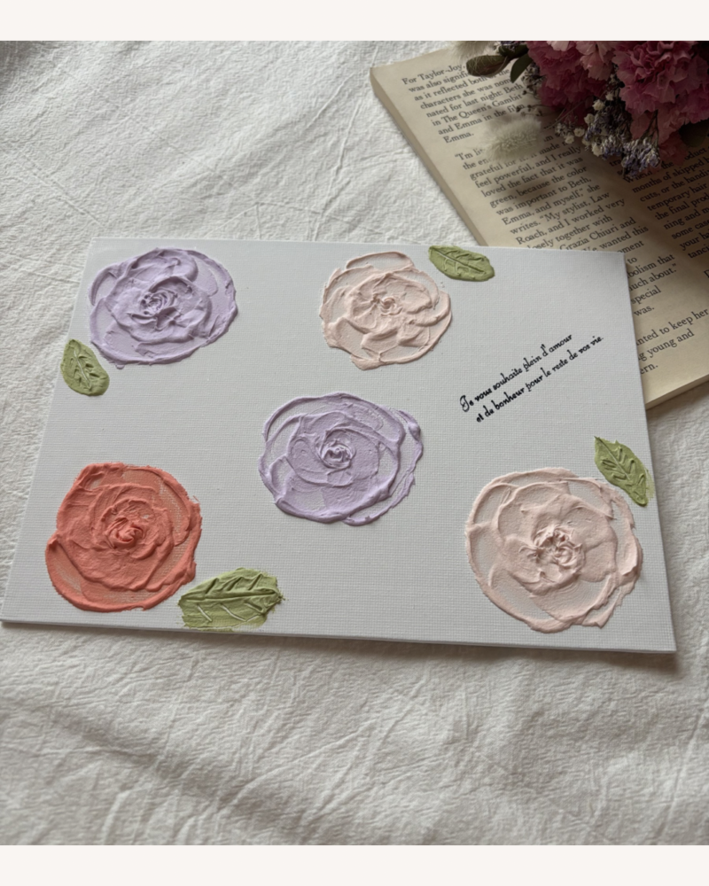 テクスチャーアートでお花を描くレッスンに、春から高校生になる娘さんとお母様にお越しいただきました♪