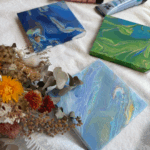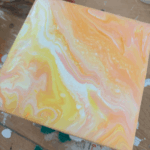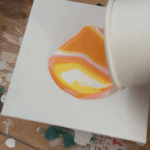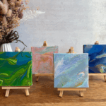 カップに注いだ絵具をキャンバスに広げ、偶然にできる模様を楽しんでいただきます♪